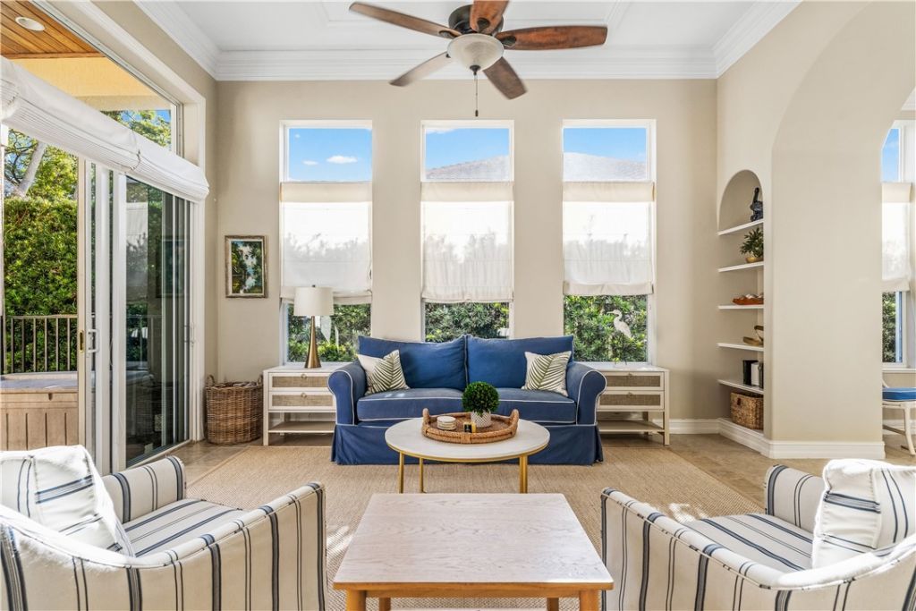 Welcome to luxury living in the gated Diamond Court Village. This expansive 2-story estate has 12ft volume ceilings, triple crown molding, full impact windows, and 8 solid doors. The gourmet kitchen features granite counters, 42 cabinets, and Bosch/KitchenAid appliances. Relax in the first-floor Primary Suite with a garden tub and dual closets. Upstairs offers 10ft ceilings, a huge loft, 3 bedrooms, 2 bathrooms, and two balconies with views. Highlights include a detached A/C studio, built-in boo...Welcome to luxury living in the gated Diamond Court Village. This expansive 2-story estate has 12ft volume ceilings, triple crown molding, full impact windows, and 8 solid doors. The gourmet kitchen features granite counters, 42 cabinets, and Bosch/KitchenAid appliances. Relax in the first-floor Primary Suite with a garden tub and dual closets. Upstairs offers 10ft ceilings, a huge loft, 3 bedrooms, 2 bathrooms, and two balconies with views. Highlights include a detached A/C studio, built-in bookshelves, fenced yard, and natural gas availability. Modern, spacious, and perfectly Vero Beach.
